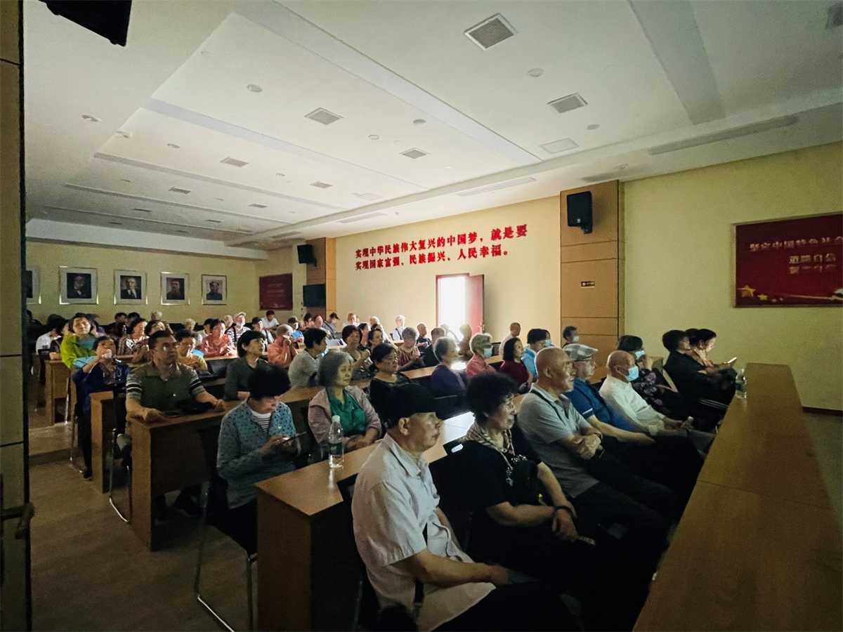 “我自愿加入中国共产党……”鲜红的党旗下,退休老党员们在支部书记带领下重温入党誓词,目光坚定、神情庄重,洪亮的声音在大厅久久回荡。