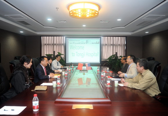 Johnny J. He教授一行首先参观了同济医院实验医学中心、器官移植中心,以及基础医学院免疫学系。接着,同济医院刘继红副院长、研究生科侯长荣科长与Jamboor K. Vishwanatha教授、Johnny J. He教授就建立双方研究生培训交流的问题进行了探讨,并达成协议。