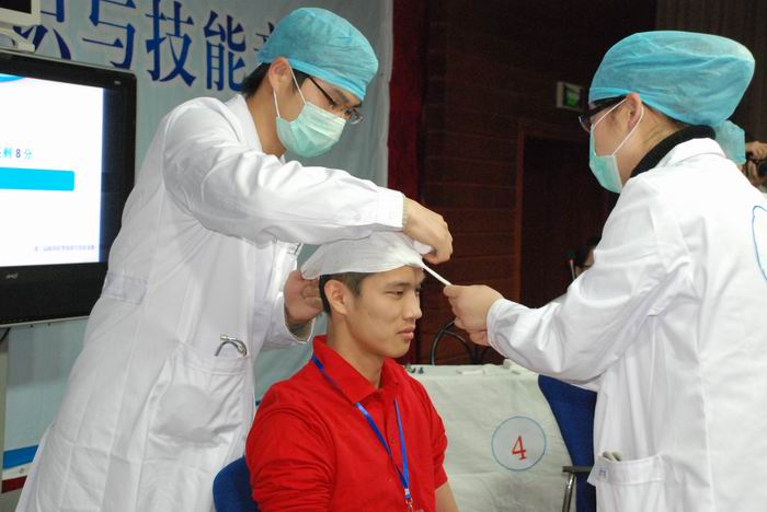 此次比赛由附属协和医院和同济医院各科室教授担任评委。共有10支参赛队伍。比赛分为两部分进行:第一部分为技能操作赛,由10支参赛队伍参加,竞赛内容有:下肢体格检查、留置导尿管、四步触诊法、小儿头皮静脉穿刺、血压测定、配奶、后穹窿穿刺术、鼻胃管留置术、小儿生长发育指标测量、手臂静脉穿刺采血、腹部切口换药;第二部分为知识竞答赛,由第一部分竞赛的前6名参赛队参加,竞赛内容为:影像判读、穿脱隔离衣、气管插管、心电图抢答、包扎操作。