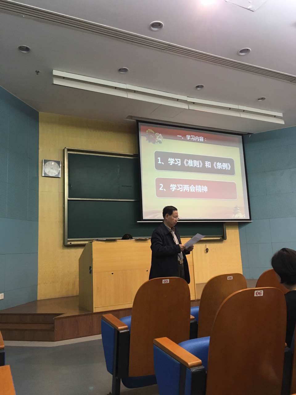 为了规范党建工作,加强两会精神学习,4月23日晚19:00点,第二临床学院2011级八年制党支部在第二临床学院教学楼二大教室举行了以“学习《关于新形势下党内政治生活的若干准则》和《中国共产党党内监督条例》”以及“学习两会精神”为专题的支部主题党日。