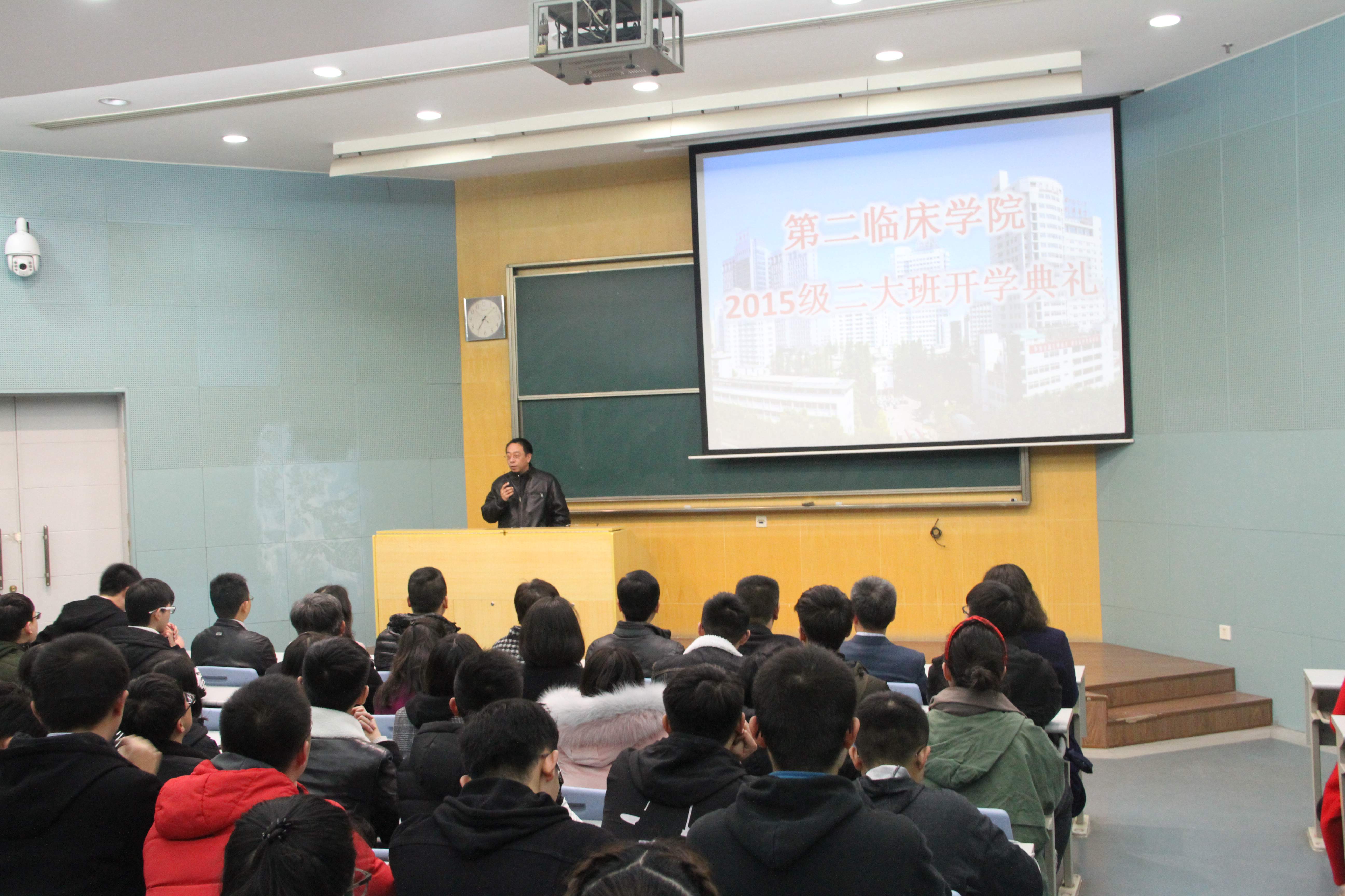 春梅吐蕊,大地回春,伴着春天的脚步,新的成员来到了第二临床学院。2月25日晚,第二临床学院举行盛大开学典礼,隆重欢迎2015级二大班全体同学进入临床学院学习。