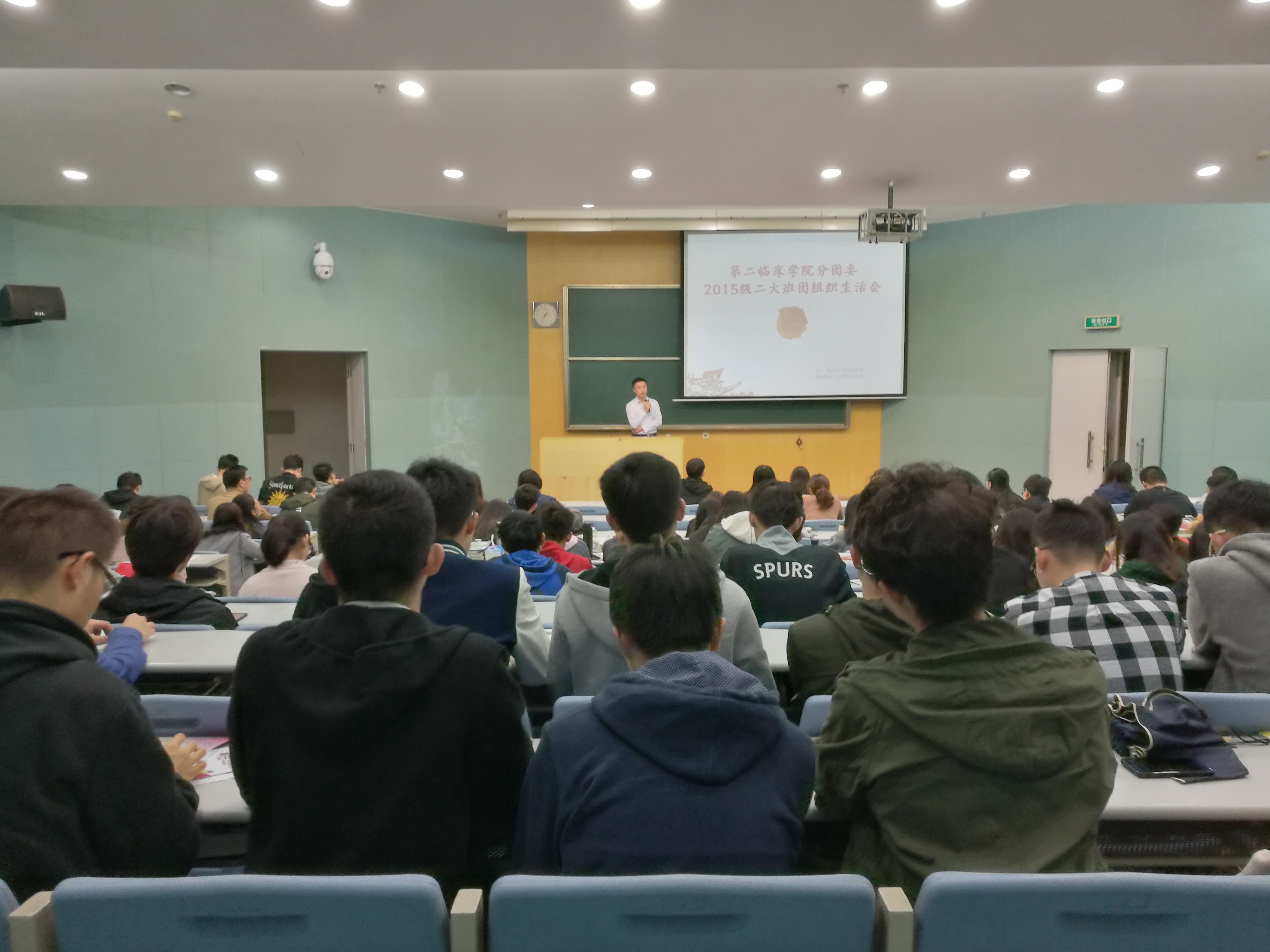 2018年10月21日晚上7点,华中科技大学同济医学院第二临床学院15级二大班团支部在第二临床学院三大教室举行了“学习团的十八大精神,深入开展‘弘扬爱国奋斗精神、建功立业新时代’活动,弘扬黄群等同志对党忠诚、恪尽职守、不怕牺牲的优秀品格”相关主题团组织生活会。此次团会由15级二大班辅导员奚哲老师主持,2015级二大班全体团员参加了此次团会。