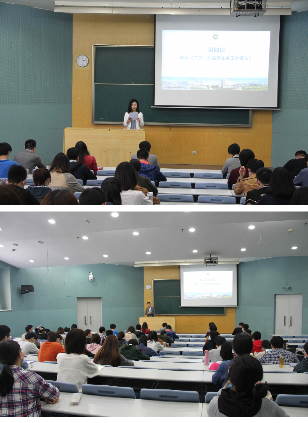 上届学生会主席国雅馨同学做了工作报告,会议审议并全票通过。第二临床学院团委书记奚哲老师汇报学代会筹备工作情况,并且全票通过《华中科技大学同济医学院第二临床学院二零一九学生会工作报告》和《华中科技大学同济医学院第二临床学院学生会章程(草案)》。