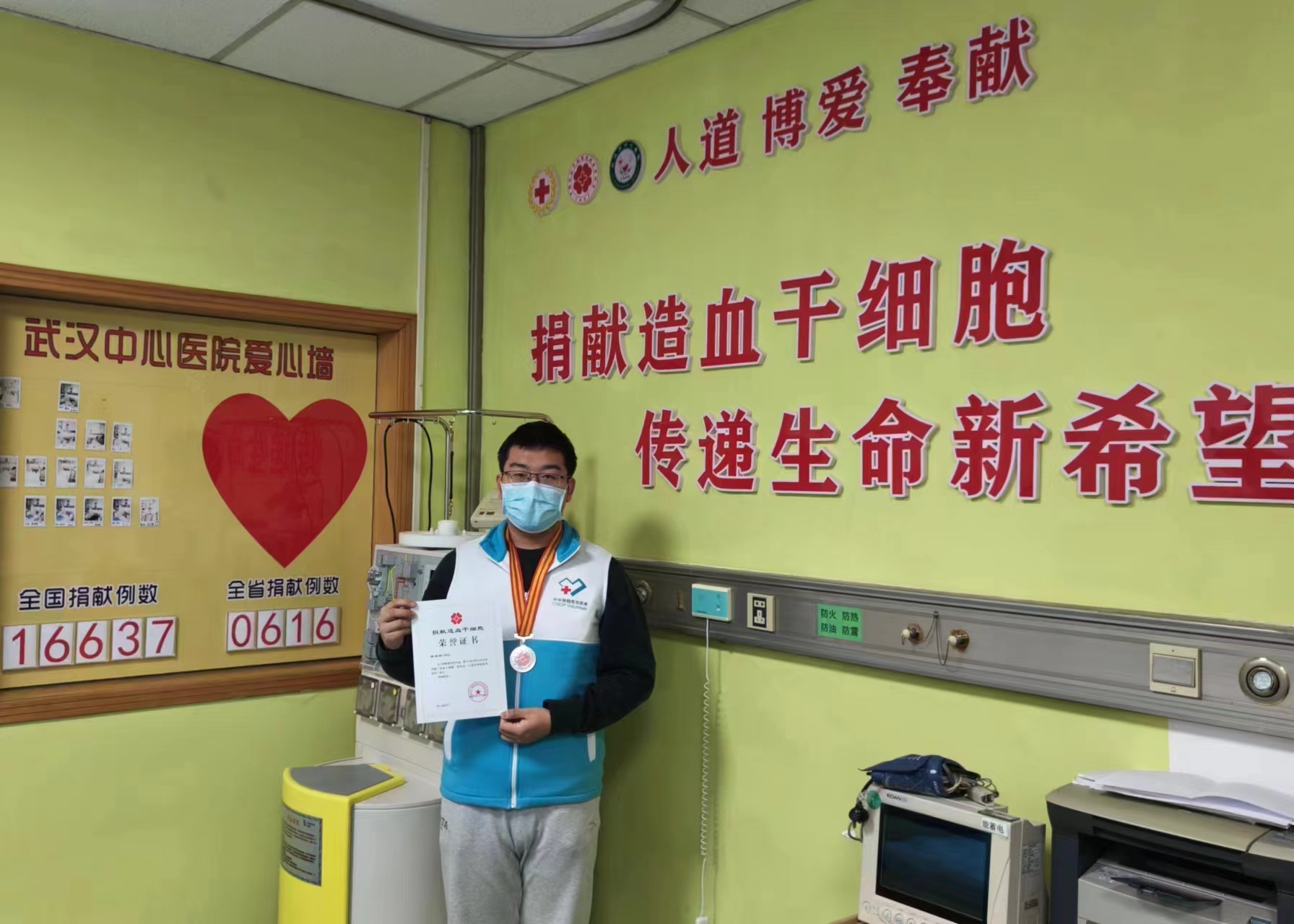 2023年12月20日上午,在武汉市中心医院经过四个小时左右的采集,来自华中科技大学第二临床学院临床医学八年制专业的孙浩桐成功捐献了造血干细胞,为一名17岁的男生送去“生命的种子”。