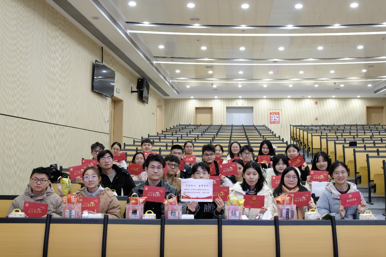 本次政治生日会的参会人员涵盖了自2020年12月至2024年12月入党的共37名学生党员。支部向各位同志送出政治生日贺卡,祝贺各位同志在党旗引领下继续携手同行、共度新年,也祝福各位同志始终坚定共产主义信仰,在服务人民、奉献社会中明确身为共产党员的自身价值、贡献共产党人的青春力量。各位党员在收获政治生日之喜的同时,必将锚定理想而破浪、踔厉奋发而前行。