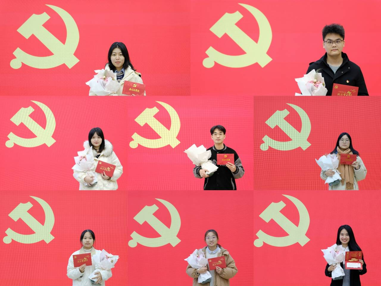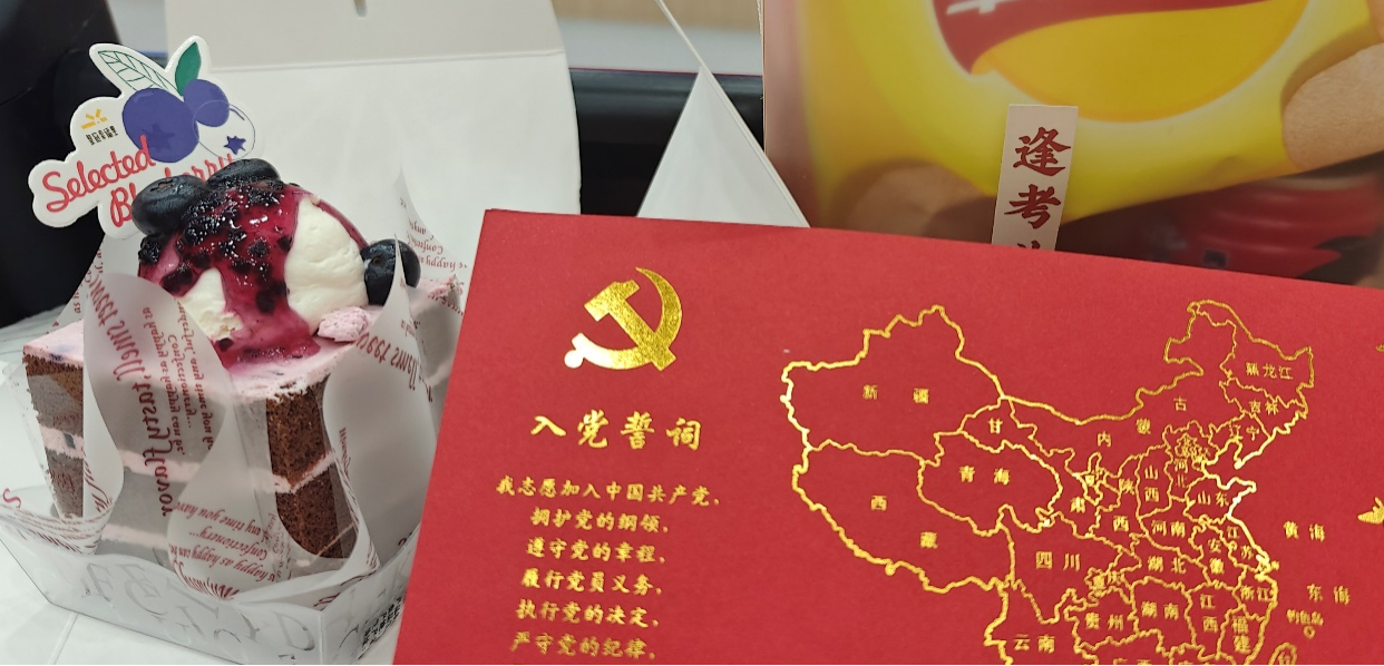 政治生日会在与党旗的合影留念中圆满结束。鲜艳的党旗照耀着一张张青春笑脸,绽放的鲜花辉映着胸前熠熠闪亮的党徽。照片或许会褪色,但是党员们的红色信念将如风中党旗,永远飘扬、永不褪色。