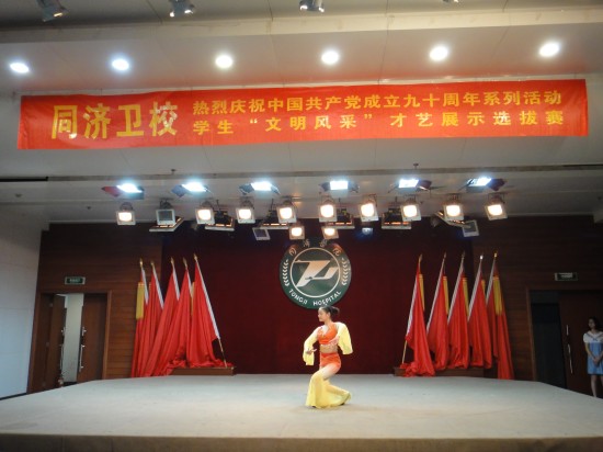 为庆祝中国共产党建党九十周年,抒发全校师生员工的爱国情怀,同济卫校于日前举办庆祝中国共产党建党九十周年系列活动之学生“文明风采”才艺展示选拔赛。全校教职员工、学生代表参加了本次活动,学校领导、特约嘉宾、学生代表组成了本次选拔赛的评委团。