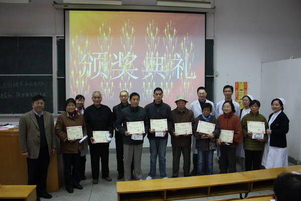 接着是此次活动的高潮部分,为同心俱乐部的“糖友”会员进行 “胰岛素注射能手”、“抗糖达人”获奖选手颁奖,“糖友们”对这样新颖的活动方式十分感兴趣,得奖者的脸庞上写满了骄傲,小小的礼品也传递着对糖尿病患者的支持和鼓励。