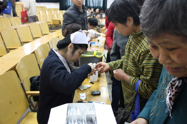 内分泌科护士长陶静的带领下护理人员忙着为每位参加活动的患者免费检测手指血糖,糖化血红蛋白和骨密度,并向患者发放了糖尿病宣传资料。上午十一时,活动完满结束。