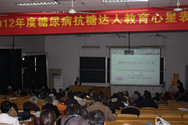 据了解,现在全球已经有3.6亿人患糖尿病,还有2.8亿的糖尿病前期人群已经一只脚跨进了糖尿病大军的行列。到2030年糖尿病患者将高达5.52亿人,另有3.98亿人进入糖尿病前期。因此预防糖尿病表现的尤为重要,而国际糖尿病联盟和世界卫生组织将每年的11月14日定为世界糖尿病日,也旨在唤起公众对糖尿病防治的重视。同济医院内分泌科“同心健康教育俱乐部 ”也积极响应 “预防糖尿病,健康教育我先行”的号召,自2008年健康教育俱乐部成立一来,举行俱乐部活动50余场,参会人员4000余次,举办各种义诊30多场。本着“走出同济,走进社区”的理念,将国际最先进的糖尿病健康教育理念与武汉本土化实际情况相结合,衍生出具有同济特色的糖尿病健康宣教模式,福泽荆楚大地。