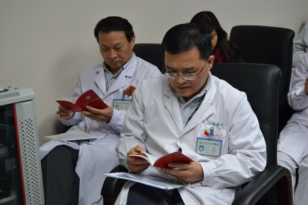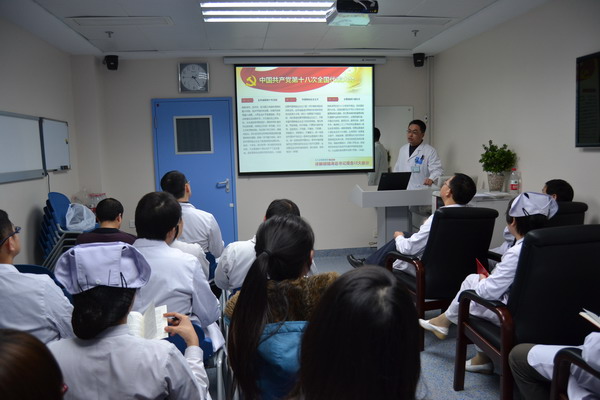 为了响应全院号召学习贯彻十八大的精神,12月5号下午4:30,骨科党支部书记郭风劲教授组织支部党员25人,以组织生活会的形式学习宣传党的十八大精神,学习活动持续1小时。此次活动开展形式多样化,气氛活泼又严肃,内容从十八大的核心内容到国内外媒体大众对这次会议的反应丰富多样,让支部党员充分认识到在工作中要吸取科学发展观的精髓,更快更好投入到创建国际一流医院的事业中去。