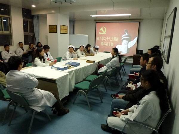 党的十八大是一次承前启后、继往开来的盛会,盛会凝聚人心,催人奋进。近段时间,眼科党支部把组织全体职工深入学习十八大精神作为当前一项重要的政治活动来抓,学习贯彻十八大精神,确保学习出成效。支部采取座谈会、开展学习研讨交流活动、自学和集中学等多种形式认真学习十八大精神。