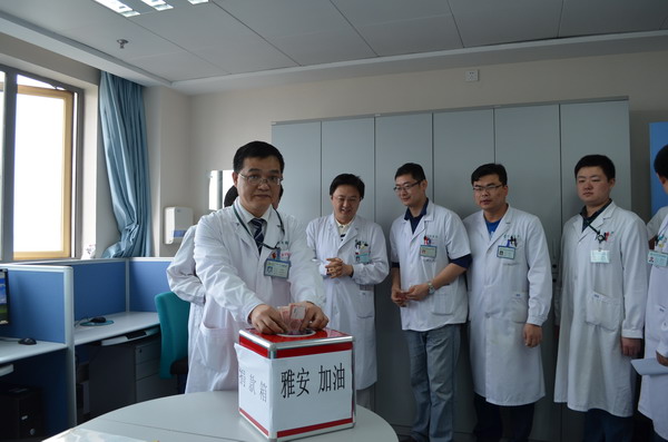 4月20日8:02,四川省雅安市芦山县发生7.0级地震,造成严重的人员和财产损失。地震无情,天使有爱。雅安人民的安危牵动全国人民的心。4月29日,骨科党支部在书记郭风劲及科主任李锋的召集下,全科100多名职工向遭受地震灾害的四川灾区人民捐款1万6千元,并将所筹款项在当天同济医院捐款动员大会上全部捐出。