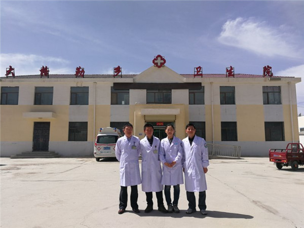 中医科刘艳娟、皮肤科邹耘、妇产科李强、放射科李建军在唐古拉山镇卫生院进行医疗巡诊活动