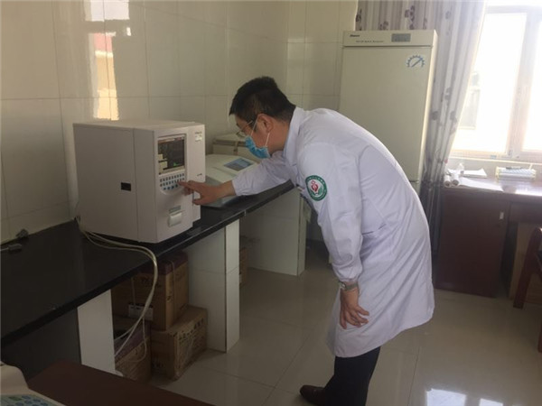 眼科李涛、甲乳外科殷茜、内分泌科刘喆隆、检验科田磊在格尔木大格勒乡卫生院进行医疗巡诊
