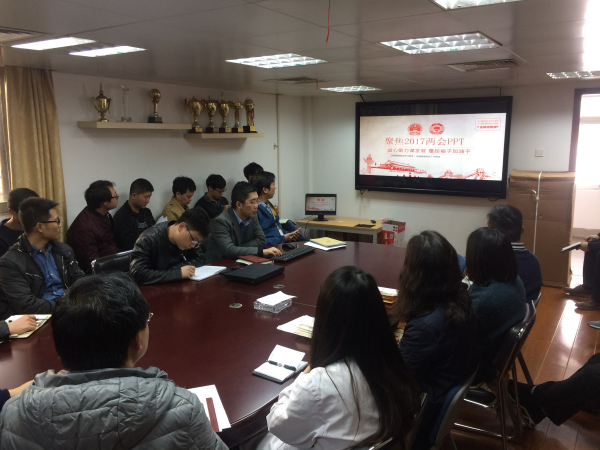 为深入学习贯彻全国“两会”精神,增强支部入党积极分子的思想政治理论素养。2017年4月11日下午,后勤二党支部开展了入党积极分子“学习两会”专题培训。支部全体支委及入党积极分子、部分青年职工参加了培训。