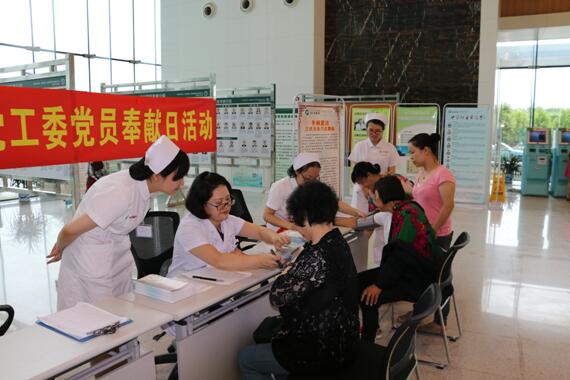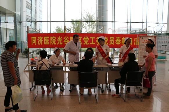 在中国共产党96周年华诞来临之际,同济医院光谷院区党工委于6月30日上午在一楼门诊大厅开展“迎七一,送心意”党员奉献日活动,以此回馈广大患者一直以来的支持和信任。