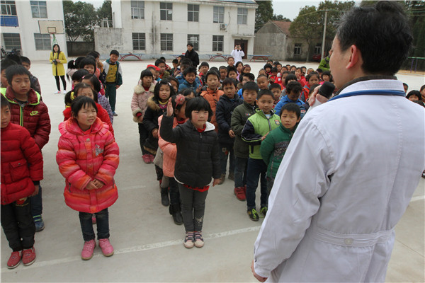 随后师生们来到藕塘小学,在操场为全体同学进行了健康知识宣教,重点介绍了学龄儿童的营养、手卫生、用眼等多个方面的知识,随后为孩子们进行了系统的体格检查。儿童是一个家庭的未来,也是村庄实现繁荣富强的希望,关注儿童的健康成长,运用医学知识为留守儿童保驾护航,也是精准扶贫的重要举措。