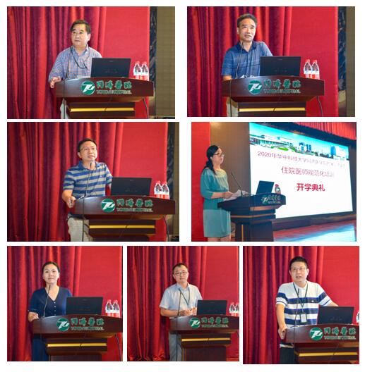 随后,外科张必翔主任,内科谢俊刚副主任,儿科陈瑜副主任,全科周洪莲副主任,急诊科钟强副主任,放射科李震副主任和妇产科乌剑利老师分别作为教学主任代表和教师代表发表了讲话。他们热烈欢迎各位新学员的到来,鼓励新进住院医师既要志存高远,也要脚踏实地;要不断加强基础理论的学习,面对困难,迎难而上。同时在工作生活当中也要正确处理与各类人员关系,尊重他人,甘于奉献,大爱无疆,培养良好的临床和科研思维,在同济医院炼就一身过硬的本领;同时,作为同济医院的带教老师,也会倾尽全力为学员的成长提供帮助和指导。