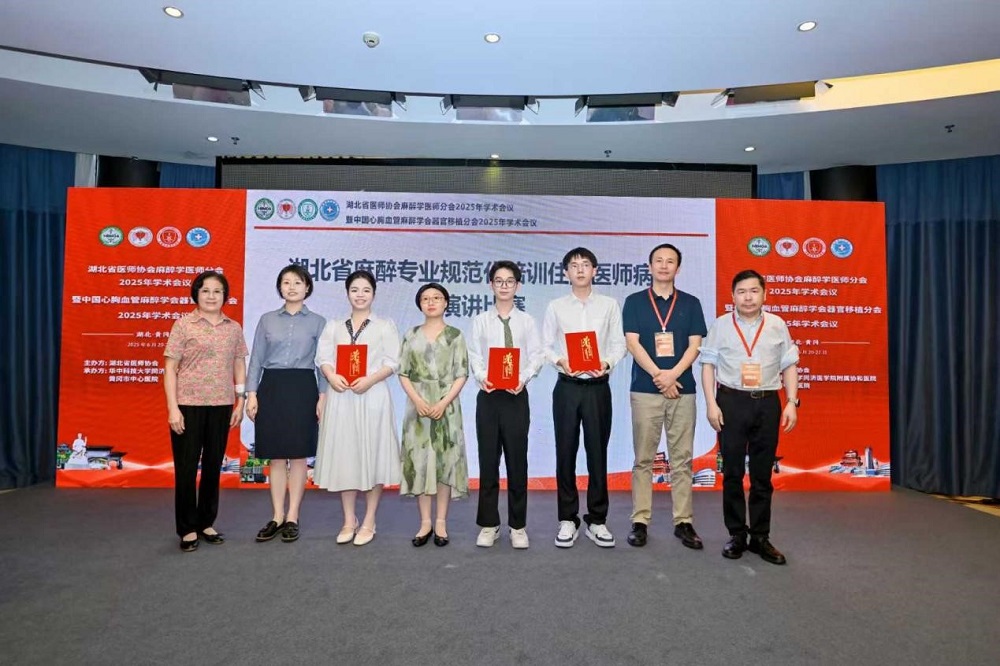 在 2025 年 6 月 20 日由湖北省医师协会麻醉学医师分会举办的湖北省麻醉专业规范化培训住院医师病例演讲比赛中,华中科技大学同济医学院附属同济医院麻醉科住培二年级学员易吴竟,在方茜老师的悉心指导下,以《心动雕刻:经心尖不停跳心肌旋切术的麻醉管理》为题的精彩汇报,从全省 21 家住培基地的优秀选手中脱颖而出,一举夺得比赛第一名。这一佳绩不仅展现了同济麻醉住培学员的卓越风采,更彰显了同济麻醉住培基地在医学人才培养领域的深厚积淀与创新实力。