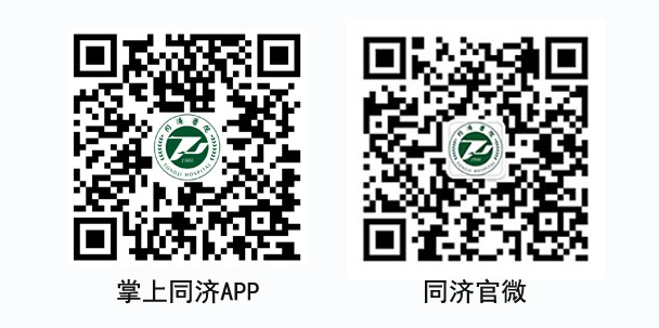 1、扫码下载同济医院官方APP“掌上同济”或关注同济医院官微(下右图)