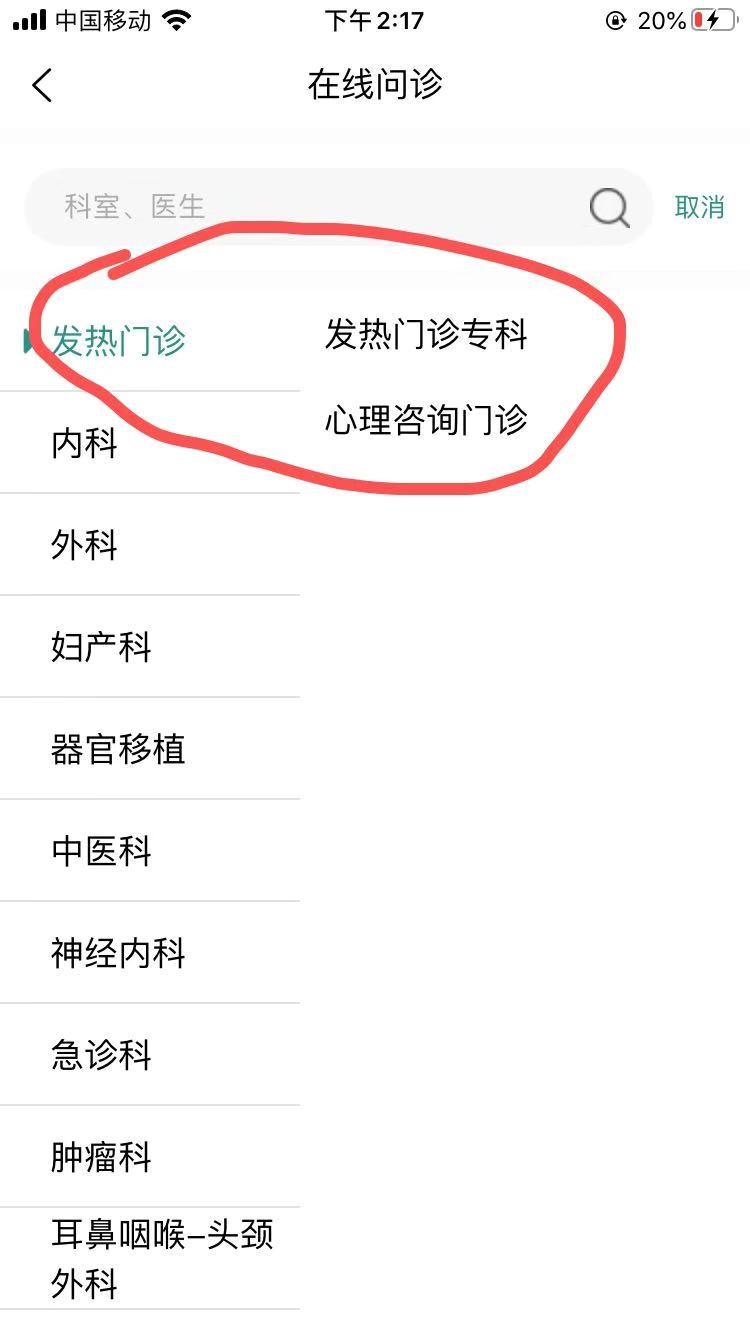 2、找到“在线问诊”板块,点击进入,即可看到发热门诊,选择对应医生发起咨询即可。