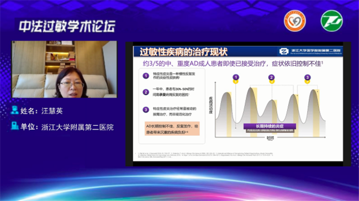 国内专家也同样给予了精彩的学术讲座。同济医院祝戎飞教授讲述了遗传性血管性水肿的诊断与治疗;广州医科大学附属第一医院李靖教授阐述了生活环境对过敏性疾病的影响;同济医院谢敏教授讲述了重症哮喘的靶向治疗;北京儿童医院的向莉教授讲述了儿童过敏性哮喘的临床特点及诊疗管理;浙大医学院附属第二医院汪慧英教授就生物制剂在过敏性疾病中的应用进行了详细的描述;南京医科大学第一附属医院程雷教授对ARIA更新要点进行解读;北京协和医院王良录教授就真菌过敏反应进行了讲解;同济医院曾明教授讲述了呼吸道变态反应性疾病与COVID-19;北京同仁医院王向东教授阐述了AIT在过敏性鼻炎治疗中的临床实践免疫治疗进展;台湾长庚医院、厦门长庚医院钟文宏教授就特异性皮炎的机制与新生物制剂治疗经验跟大家进行了分享。
