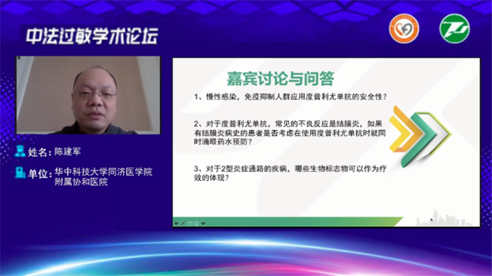 报告结束后,各位专家就慢性感染、免疫抑制人群应用度普利尤单抗等生物制剂的安全性、常见不良反应以及2型炎症通路的疾病中,哪些生物标志物可以作为疗效的体现进行了深入交流。