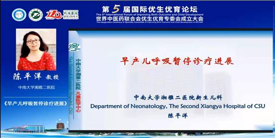 陈平洋教授讲授的是《早产儿呼吸暂停诊疗进展》,先从AOP的定义、分类进行介绍,详细讲述了AOP的发生机制、病理生理、发作特点及危害,如何监测和评估AOP,AOP的治疗方法。