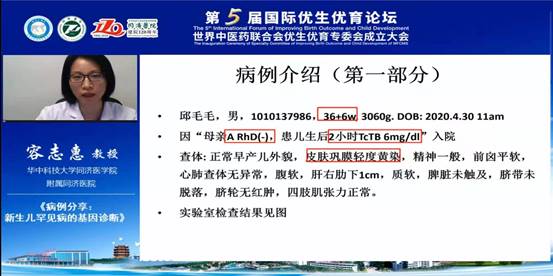 容志惠教授讲授的是《病例分享:新生儿罕见的基因诊断》,容志惠教授从一个新生儿黄疸病例分析开始,主要包括:新生儿溶血病的诊断思路,新生儿换血舒术的操作及并发症,核黄疸的诊断及治疗,新生儿颅内感染的诊断,新生儿遗传代谢病的诊疗思路。