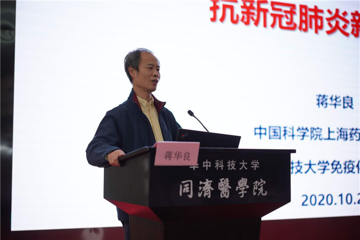 陈建国校长亲自主持了学术报告环节。蒋华良院士结合团队抗疫攻关的经历,围绕“抗新冠肺炎新药研发”做了精彩的专题报告。在报告中,蒋院士围绕新药研发、老药筛选、病毒蛋白结构解析、临床研究等方面进行了报告。