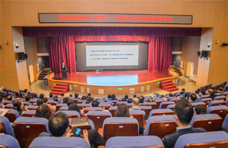 吴菁书记还就医院“十四五”的初步思考,八个发展目标和八个重点发展方向做了说明。在报告会的最后,她强调,贯彻落实十九届五中全会精神是当前医院重要任务,一是要深入学习传达党的十九届五中全会精神,通过抓好学习组织,通过干部带头学习、重点学习,准确把握精神,同时要加强宣传引导和学习研究。二是要以五中全会精神为指导,编制好医院“十四五”发展规划和远景目标。充分贯彻新发展理念、构建新发展格局,推进高质量发展;充分体现华中科技大学第四次党代会精神和学校“十四五”规划要求;坚决落实医院第九次党代会部署;要一以贯之,一张蓝图绘到底,保障医院建设发展的持续性;统筹兼顾,既要制订医院发展规划,同时形成各专项规划;集思广益,广泛征求医院干部职工和社会各界意见;还要做好总结和谋划,为新征程开好局、起好步。三是要贯彻五中全会精神,抓好当前工作和年度工作计划。四是要抓好医院党建各项工作,加强党对医院工作的全面领导。要以人民健康为中心,坚持正确发展方向,坚持人民至上、生命至上,坚持改革创新发展,坚持高质量发展主线,为健康中国战略和学校“双一流”建设作贡献,为全面建成国际一流医院继续努力。