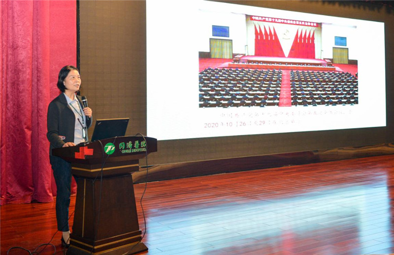 吴菁书记的领学从十九届五中全会的基本情况、全会的主要精神、当前医院重要任务三个方面展开。她首先就十九届五中全会的召开情况、会议主要内容等做简要介绍,并对《中共中央关于制定国民经济和社会发展第十四个五年规划和二〇三五年远景目标的建议》做出了解读。