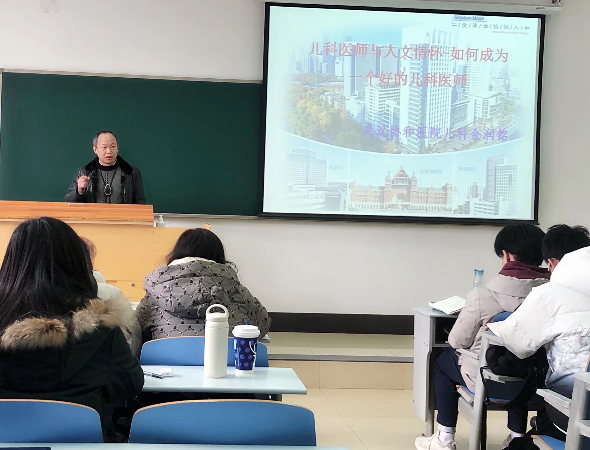 “优秀的儿科医师当守君子之德、慈母之心、智者之魂。”金润铭教授讲授《儿科医生与人文》,他激励并引导学生们敬畏生命、敬畏病人、敬畏医学。
