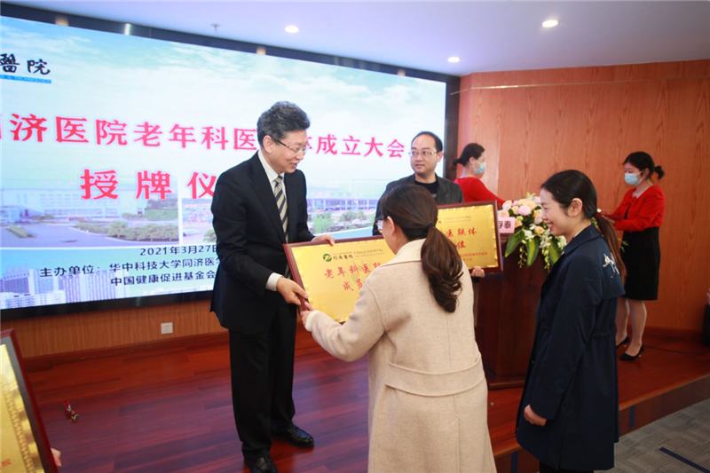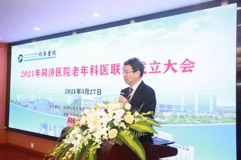 2021年3月27号,由华中科技大学同济医学院附属同济医院牵头、联合省内多家知名医疗单位举办的“2021年同济医院老年科医联体成立大会”在美丽的江城武汉胜利召开。湖北省卫健委江中三副厅长、同济医院刘争副院长、中华医学会老年医学分会前任主任委员于普林教授以及来自省内外各地的老年医学专家齐聚一堂,对同济医院成立老年科医联体表示祝贺。