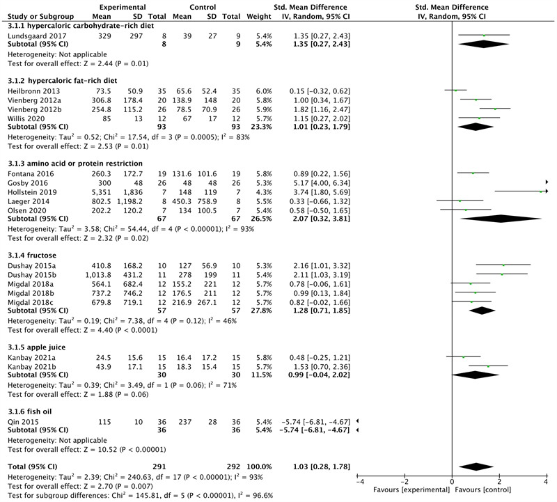 图2. FGF21与不同类型饮食的关系