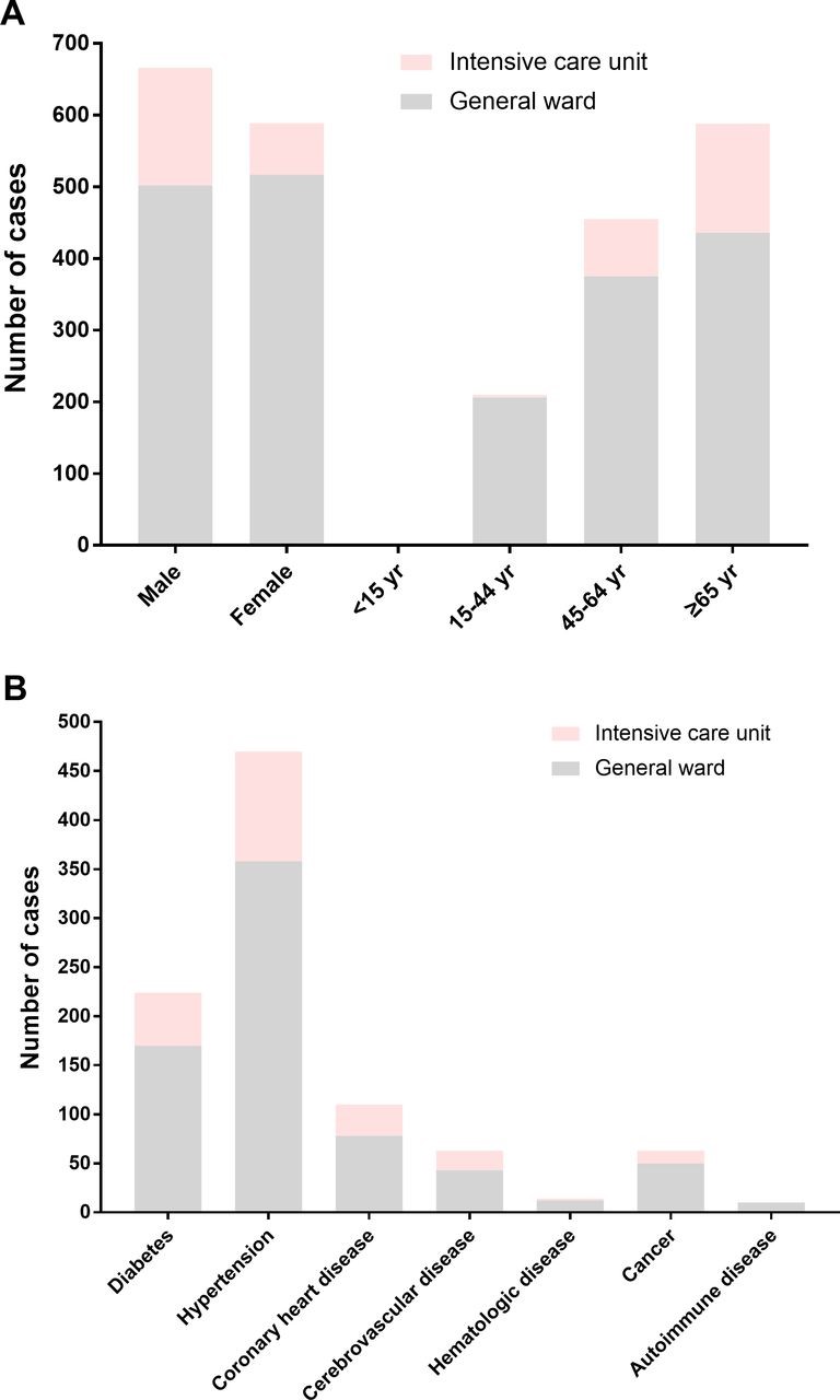 同济医院1255例COVID-19住院患者的分布(图片来源,参考资料[1])