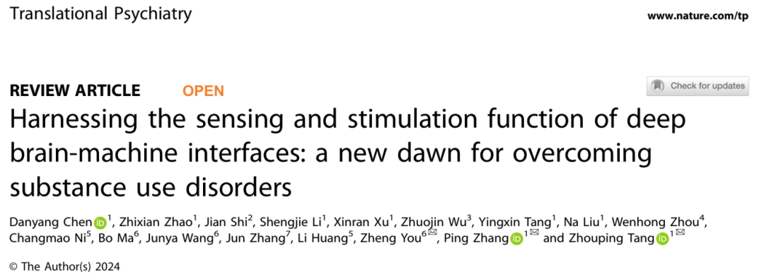 物质使用障碍是指对一种或多种物质过度依赖和滥用引发的精神健康问题,给个人和社会造成了巨大的负担。10月17日,华中科技大学尤政院士、华中科技大学附属同济医院神经内科唐洲平教授和张萍副主任医师的研究团队开展以深部脑机接口的智能化闭环调控理念,研究分析了深部脑机接口的传感和刺激功能在治疗物质使用障碍疾病时的可行性和潜在机制,提供了治疗新视角。研究综述文章发表在国际期刊《转化精神病学》杂志上。