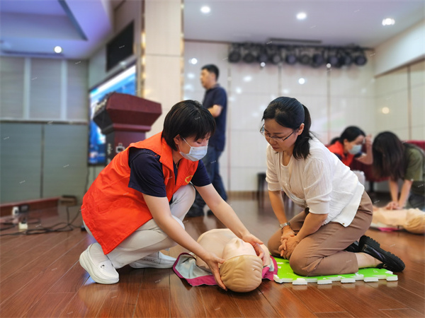 《健康中国行动(2019-2030)》把居民掌握基本的心脏急救知识和技能纳入健康知识普及行动的主要之一,但目前我国公众对急救的反应仅限于拨打120和等待急救车,现场急救实施率仅1%。为普及全民应急救护知识,在意外事故现场能够进行及时有效的救护,提升公众的应急救护能力,7月5日同济医院急诊志愿服务队来到崇仁路小学开展心肺复苏培训,为全校170余名教师们送上了一场内容丰富、富有实效的急救知识盛宴。