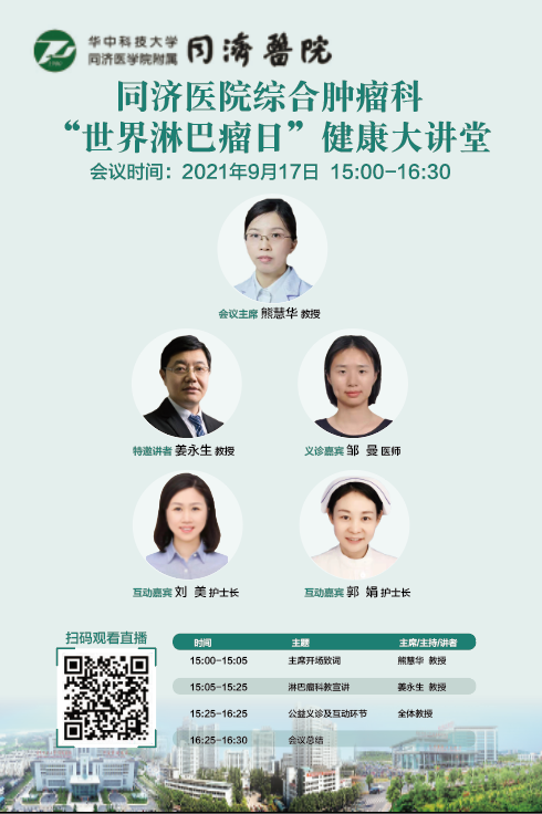 为提高患者及全民对于淋巴瘤的认知,推动淋巴瘤疾病的早期预防、早期筛查、早诊早治及规范化治疗,华中科技大学同济医学院附属同济医院综合肿瘤科团队在熊慧华主任、姜永生副主任的带领下,举办了“积极战胜疾病,共创美好未来”的主题患教会。