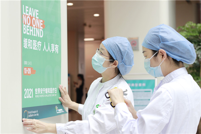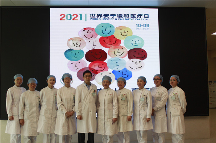 2021年10月9日是第十七个世界安宁缓和医疗日,本次的主题是:"Leave no one behind - equity in access to palliative care”---缓和医疗,人人享有。活动日当天,肿瘤科医护团队在院领导的支持下,在中法新城院区开展了“安宁缓和医疗,提高患者生命质量”的专题推广活动。