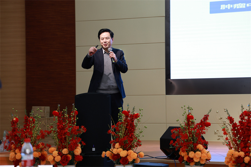 肿瘤科党总支书记胡广原教授发表致辞。他表示,肿瘤科党总支将一如既往地发挥战斗堡垒作用,带领全体医护人员坚定信念、勇攀高峰,为肿瘤患者的健康事业不懈努力。