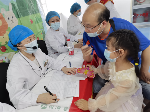 活动现场医护人员为50多名孩子进行了健康义诊,免费眼检查、验光,并发放近视防控、小儿眼健康的科普知识手册。为儿童准备了一份精美贴心的爱眼礼物,受到了家长和孩子们的高度欢迎。