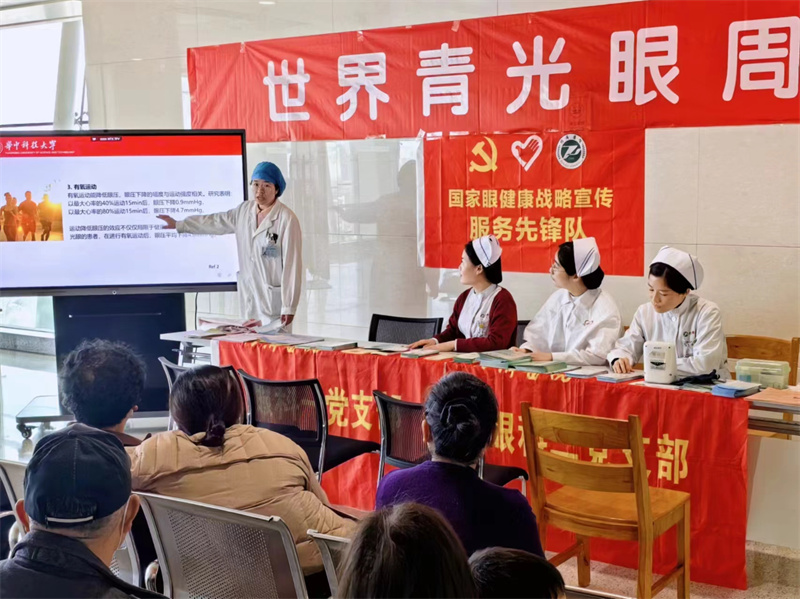同时,在眼科一支部书记李涛副主任医师和李贵刚教授的带领下,眼科医护人员在中法新城院区、光谷院区开展了青光眼慢病管理的相关宣教及义诊活动,得到了现场参与的青光眼患者及家属的一致好评。