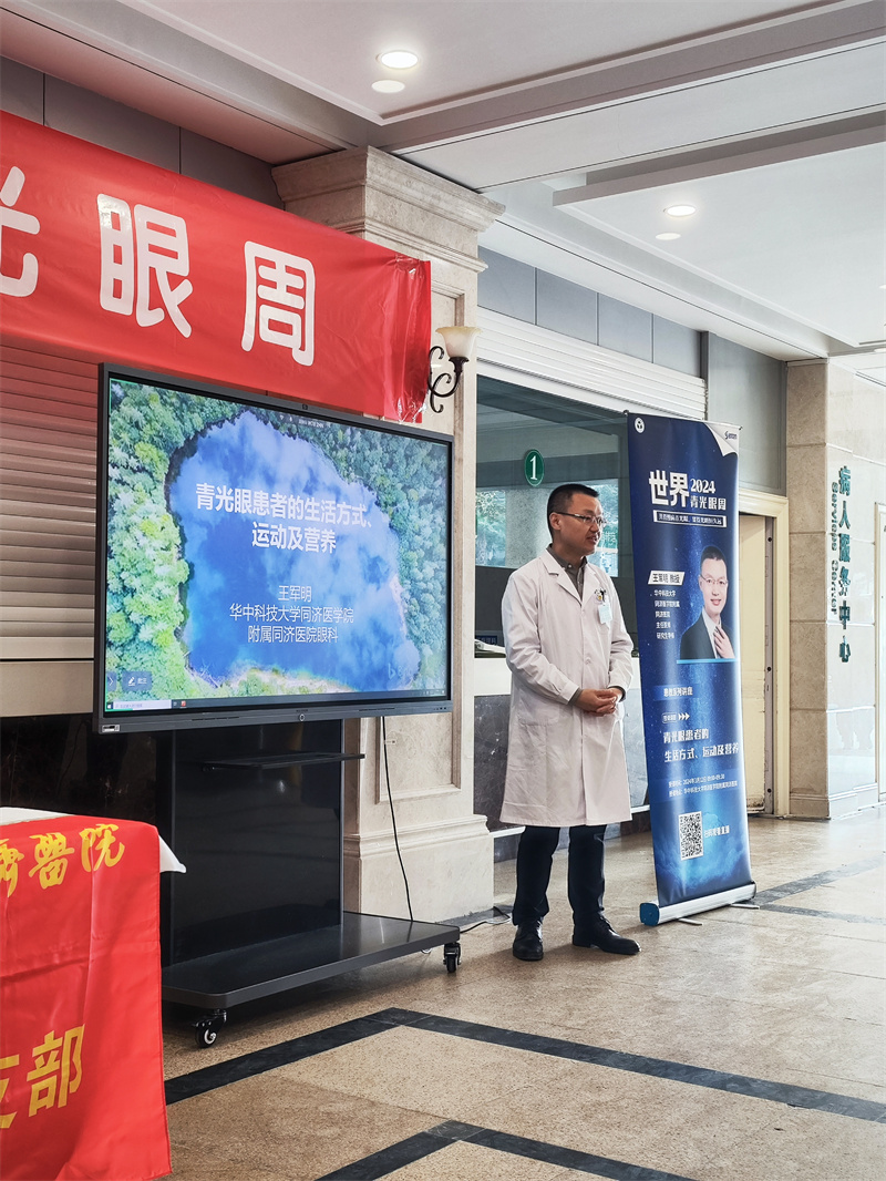 3月12日上午8点同济医院眼科党总支部书记王军明主任医师在汉口院区给各位患者朋友进行了一场生动的“青光眼患者的生活方式、运动及营养”的科普讲座,深入浅出的为大家讲解了青光眼患者应该怎样从日常生活的角度去进行青光眼的慢病管理,并与青光眼患者进行了充分的沟通,为现场的青光眼患者解除了很多疑惑。