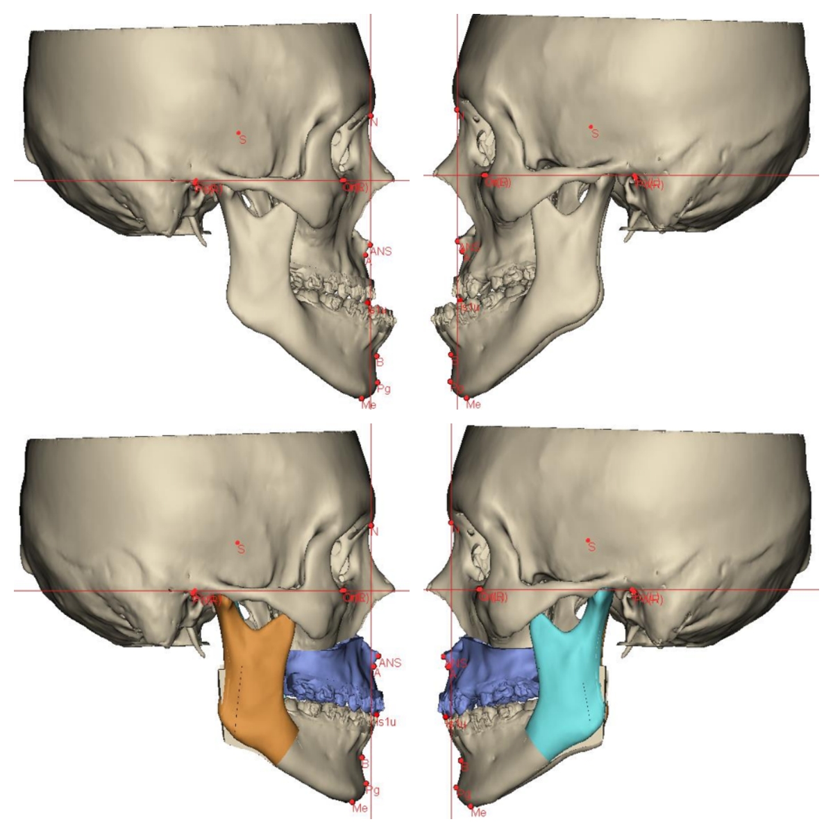 于是,胡传宇医生团队与正畸科医生团队根据3D模型再建技术进行了精准评估和诊断,并制定了详尽的“正畸+正颌”手术方案。2021年10月,先通过正畸将小朱牙齿排列整齐;2024年4月15日,历时4个小时的正颌手术顺利完成,小朱的面型成功回归正位。