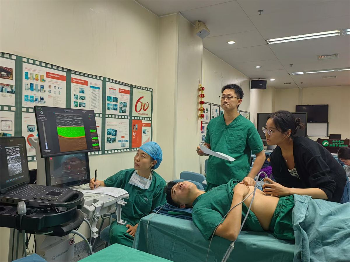 理论培训结束后,学员们参与了实操培训,利用人工智能辅助的超声引导设备进行模拟演练,这一环节不仅提高了学员们的实践技能,也让他们对人工智能在医学领域的应用有了更直观的认识。