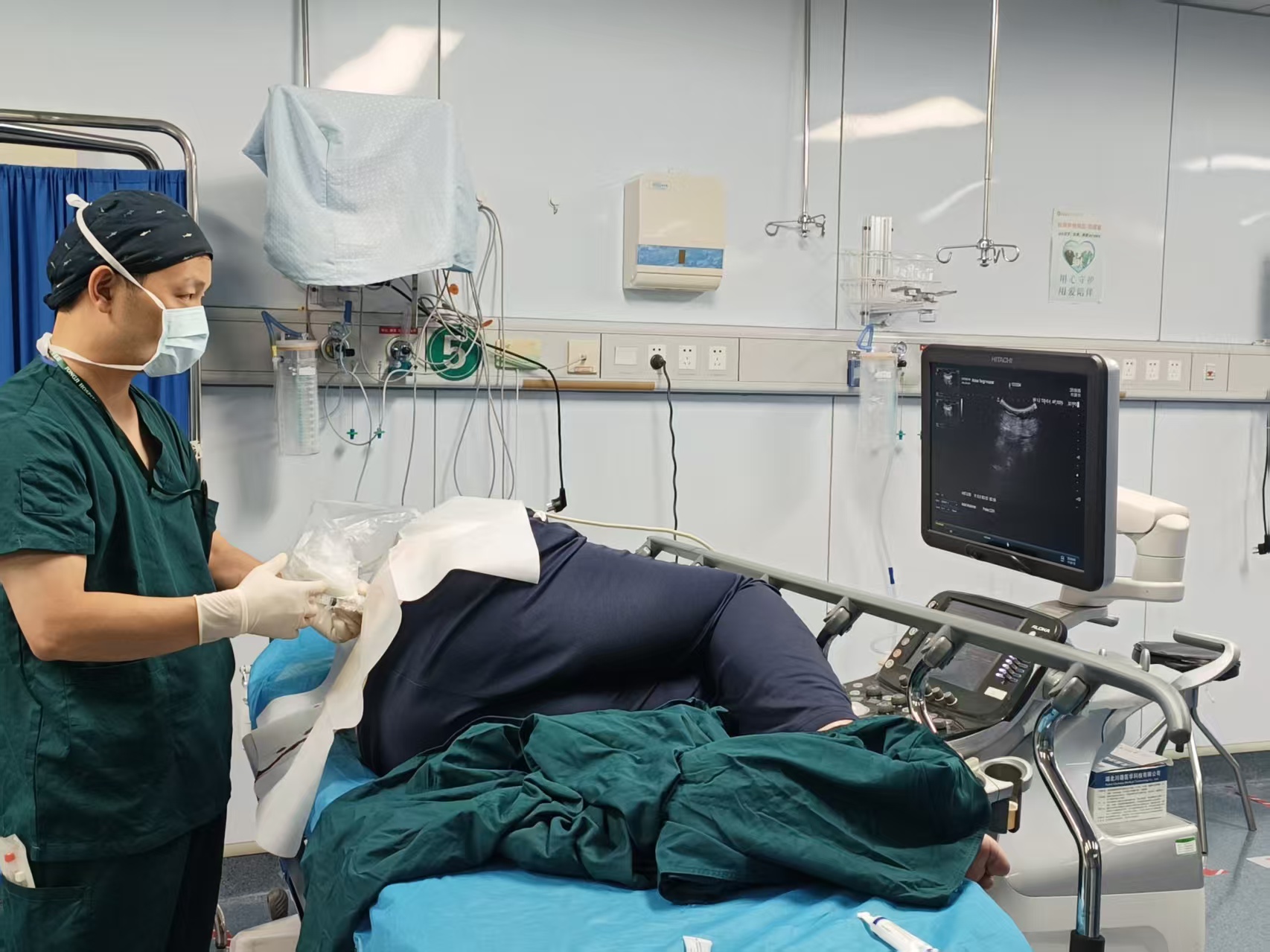 在梅伟教授、樊龙昌教授和张旻教授的指导下,我院麻醉科柯希建博士于2022年在国内率先开展了超声实时引导的超细针腰椎穿刺和鞘内注射诺西那生治疗。这一新技术的应用,成功突破了传统解剖定位的局限,且避免了反复使用CT引导所带来的辐射风险,为复杂病例的SMA患者带来了新的希望。