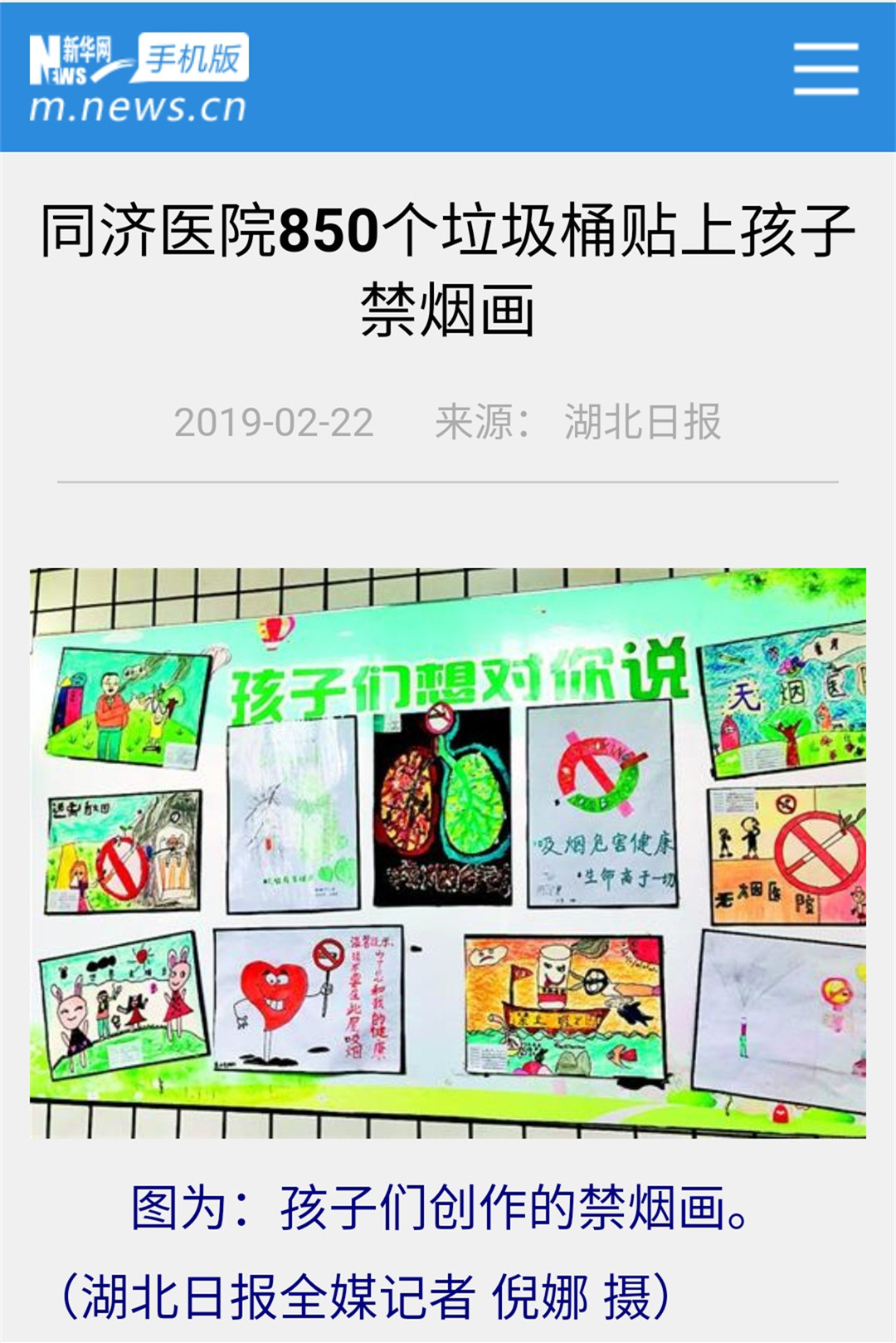 新华网:同济医院850个垃圾桶贴上孩子禁烟画