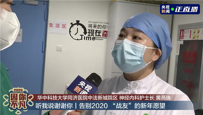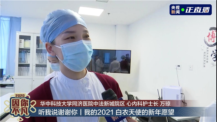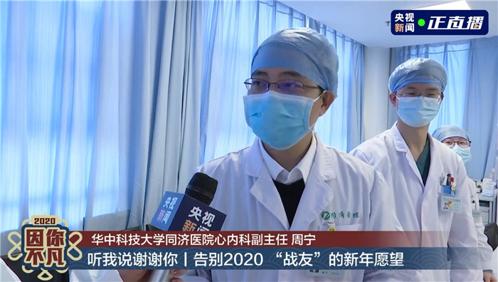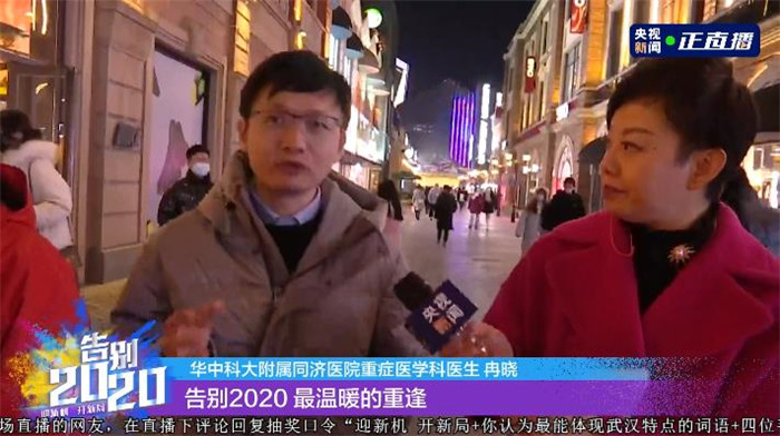 12月30日-31日,同济医院急诊-重症医学科冉晓、神经内科黄燕珠、心血管内科周宁、万琼等抗疫医护代表,受邀参加央视新闻推出新媒体直播特别节目《告别2020 迎新机 开新局》《2020因你不凡》,与央视记者徐平共同回顾难忘的抗疫经历,温情告别2020。